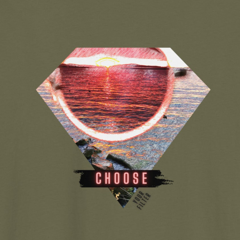 Just as sunglasses color your vision, your mindset influences your perception. It filters how you view your surroundings, and your thoughts shape your reality. This shirt has been created to remind you of your ability to enhance your perspective and to encourage you to actively decide how you interpret the world around you.
